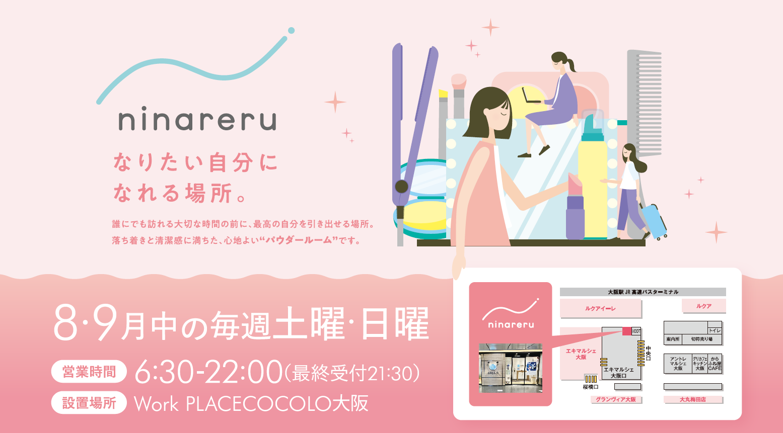 在JR大阪车站内,粉末室的新服务“ninareru”将限时实施营业!