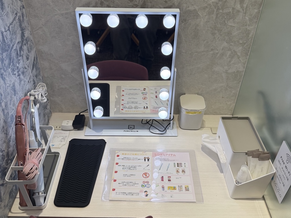 ReFa的发型熨斗、发油、发胶、康姆、补妆、擦汗纸巾、早用口罩、多合一化妆品、更衣室等(详情请参阅官方SNS)